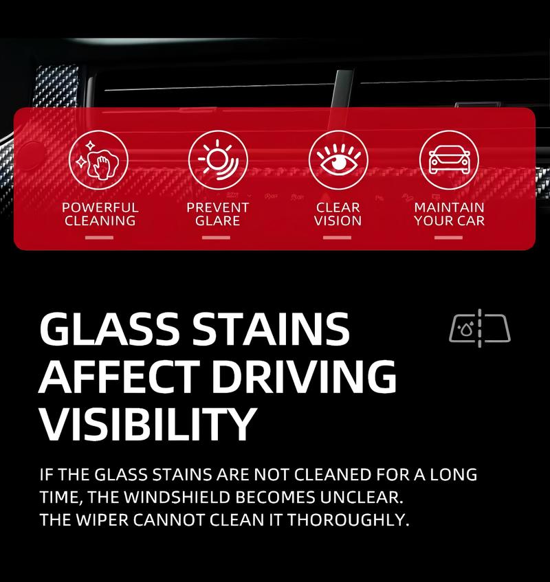 - Powerful Stain-Busting Magic 🧹Erases stubborn oil film, road grime, AND hard water stains—even the ones wipers CAN’T touch! 🚫💨Leaves glass CRYSTAL CLEAR—no streaks, no residue. Perfect for windshields, side mirrors, AND home glass (bathroom, kitchen, you name it! 🏠✨).